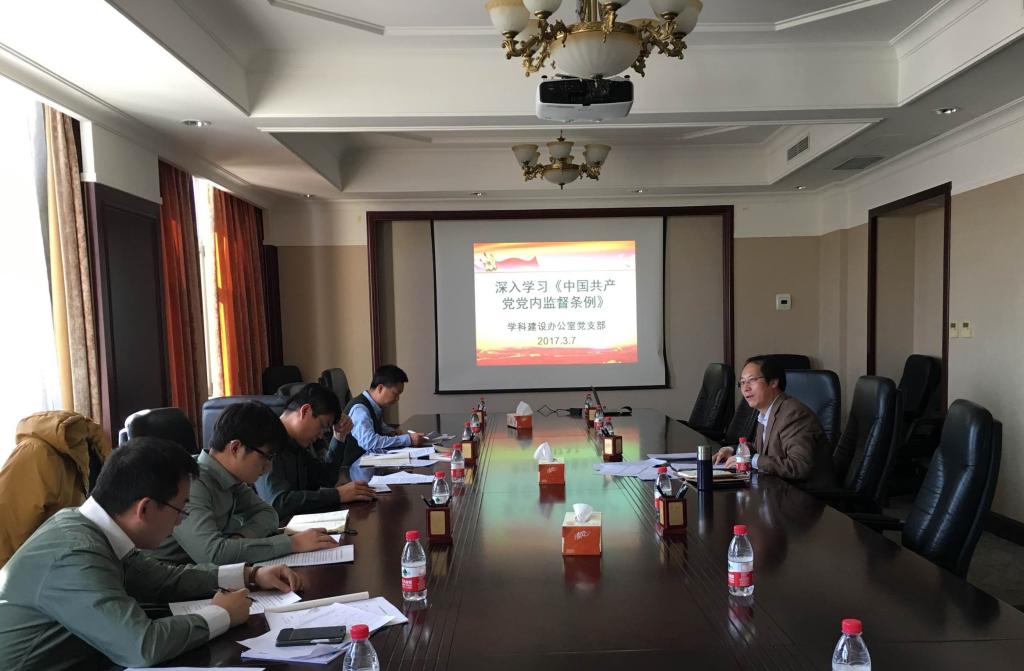 为了扎实深入推进“两学一做”学习教育,根据《中共中央组织部关于在“两学一做”学习教育中召开专题组织生活会和开展民主评议党员的通知》(组通字〔2016〕62号)文件精神和机关党委“两学一做”专题组织生活会和民主评议党员工作方案(大工机关委〔2017〕4号)及学校专题教育方案总体部署要求,3月7日下午,学科办主任马学虎教授在主楼413会议室组织学科办党支部成员集中学习《关于新形势下党内政治生活的若干准则》和《中国共产党党内监督条例》,学科办党支部书记秦涛同志主持会议。